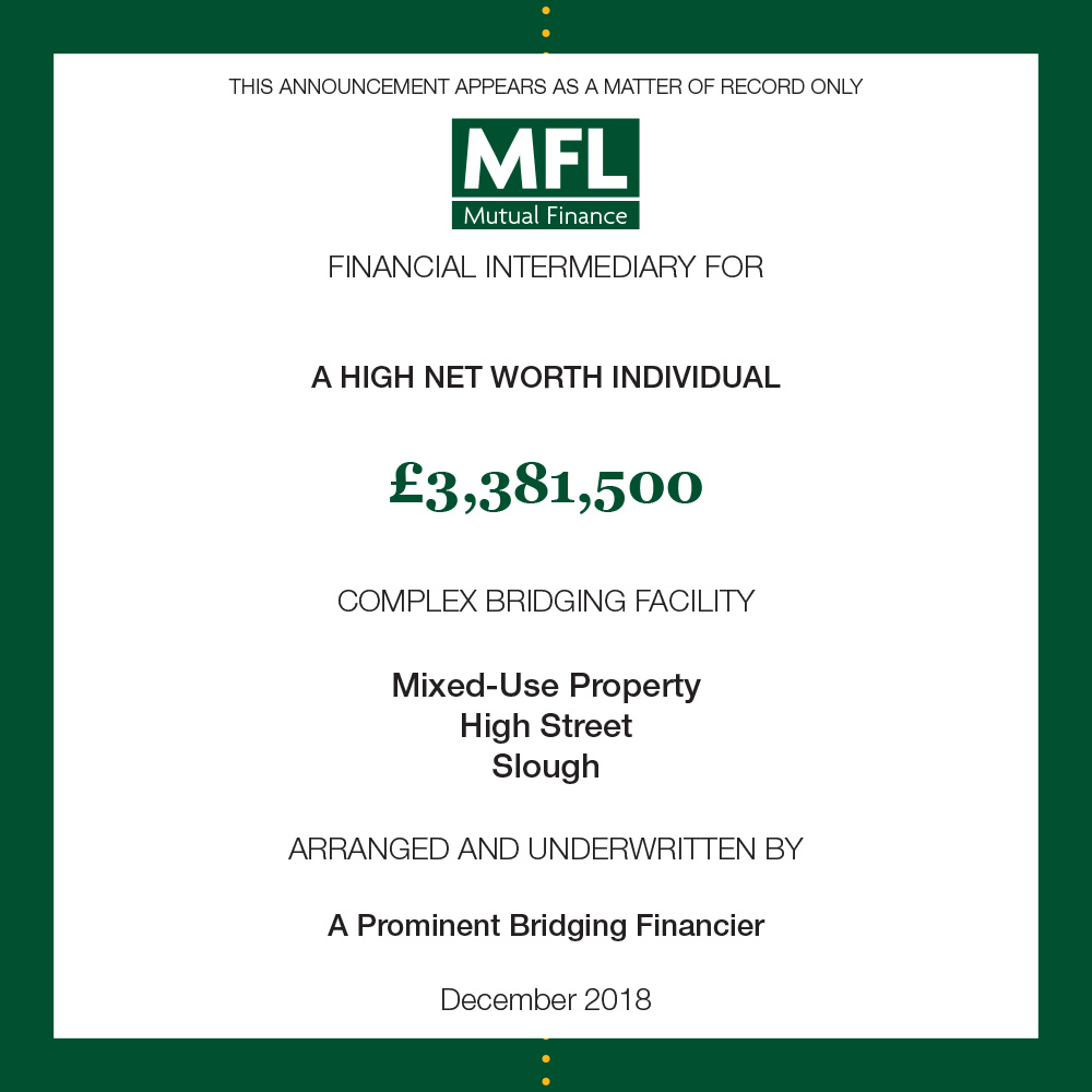 A bridging facility was required by our client to assist with their asset management plan. The facility replaced the original lender who was unable to work with the asset whilst vacant possession was obtained meaning no income was available to service debt on a current basis.