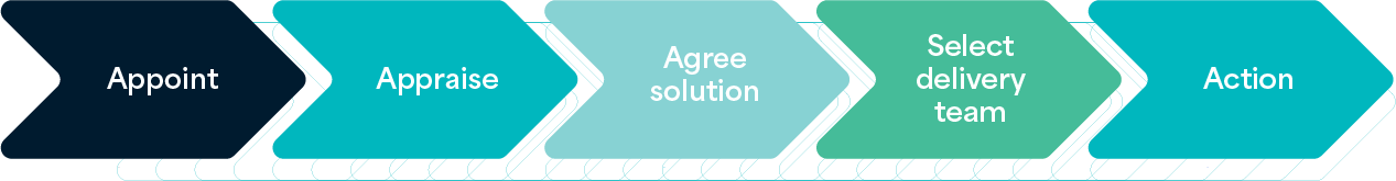 If additional advice is required, we will draw up a specification and seek tenders from the most appropriate experts. This will allow us to bring a composite solution to you for discussion and agreement. Once we have ensured our solution aligns with your objectives, we will appoint the team on your behalf and implement the strategy.